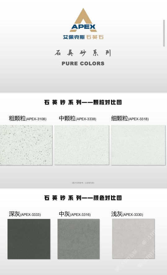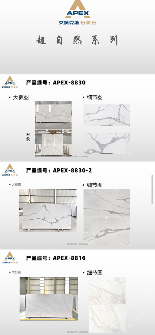 艾佩克斯秉承“精益求精”的開發(fā)理念,在人造石生產(chǎn)工藝上大膽突破,研發(fā)出更具特色的新石代石英石,色彩自然豐富,具有天然石材的質(zhì)感和美麗的表面光澤。產(chǎn)品具有刮不花、不污染、用不舊、燃不著、無輻射等五大特點(diǎn),可以廣泛用于公共建筑酒店、餐廳、銀行、醫(yī)院、展覽館、實(shí)驗(yàn)室等和家庭裝修廚房臺面、洗臉臺、廚衛(wèi)墻面、餐桌、茶幾、窗臺、門套等領(lǐng)域,是一種無放射污染、可重復(fù)利用環(huán)保、綠色新型建筑室內(nèi)裝飾材料。是的裝飾裝修材料。