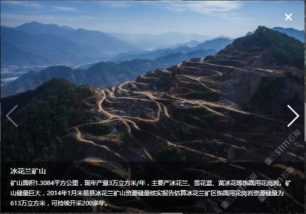 位于四川省攀枝花市米易縣,本公司專業(yè)做花崗石礦山開采、花崗石板材生產(chǎn)及銷售。與廈門萬里石股份有限公司合作開采“冰花藍”寨子山礦山,與高時石材米易愉天礦業(yè)合作開采“冰花藍”石板溝礦山,并自有“豹皮花”礦山和米易東成礦業(yè)。年產(chǎn)花崗石荒料3萬立方,在米易長坡工業(yè)園區(qū)控股三個工廠合計面積120余畝。年產(chǎn)花崗石板材80萬平米。旗下主要產(chǎn)品:“冰花藍”、“豹皮花”、“芝麻黑”、“芝麻灰”。產(chǎn)品主要用于大樓外墻干掛、廣場地鋪、路緣石、墓碑石、景觀園林用石等。