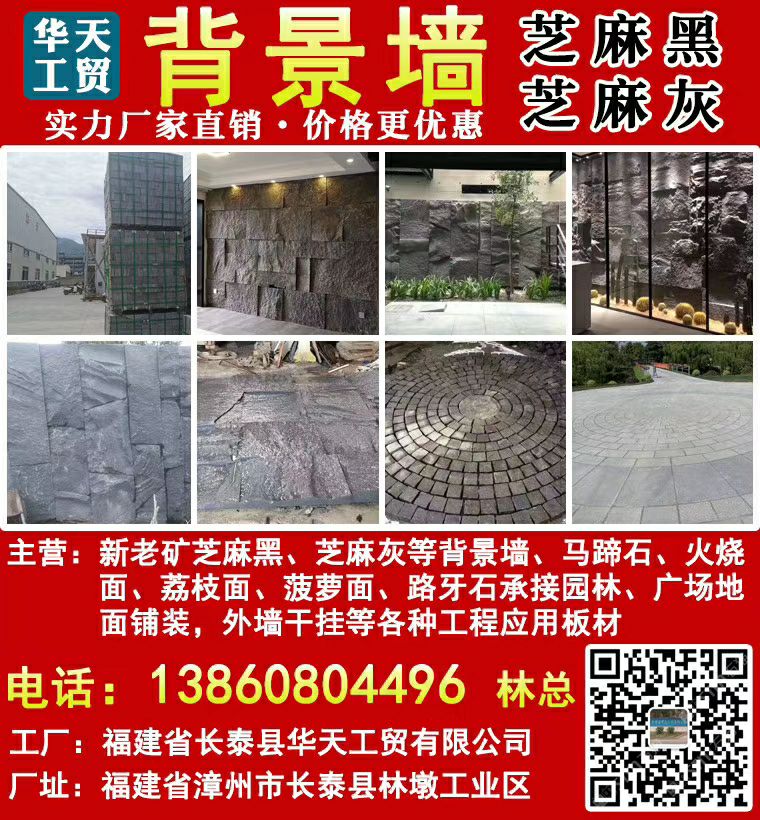 芝麻黑芝麻灰石材-和福石業(yè)林經(jīng)理13860804496自有大型加工廠,位于長(zhǎng)泰縣林墩后爐工業(yè)區(qū);主營(yíng):老礦芝麻黑、新礦芝麻黑、副礦芝麻黑、老礦654、新礦654、芝麻黑G654、老礦芝麻黑G654、芝麻灰G655石材、芝麻白G623花崗巖、G688深灰麻、G641喬治亞灰、新礦喬治亞灰、黑色麻石、灰色麻石、白色麻石、黃麻石等,以墓碑石材加工為主,墓碑套墓、墓碑主碑、墓碑石大頭、墓碑石斜蓋板、光面墓碑石厚板等碑石加工,承接路沿石、地鋪石、馬蹄石、對(duì)剖石、亂拼石、冰裂紋、小方塊、蘑菇石、自然面背景墻、樹圍花圍、游泳池蓋板、盲道石、廣場(chǎng)石等市政園林景觀工程,歡迎你來(lái)電溝通洽談業(yè)務(wù)!