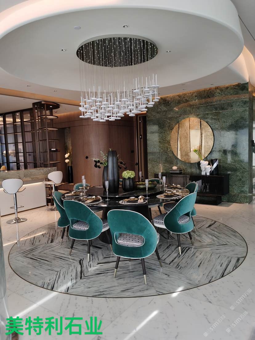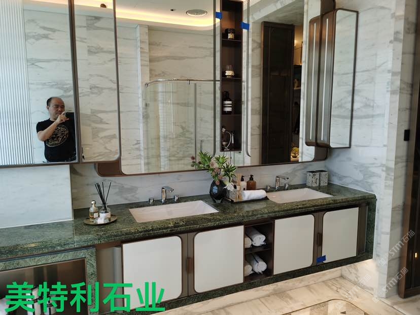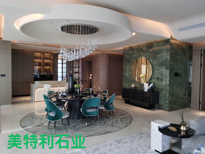 370平方的大平層,背景墻,臺面所用綠色大理石~寶格綠