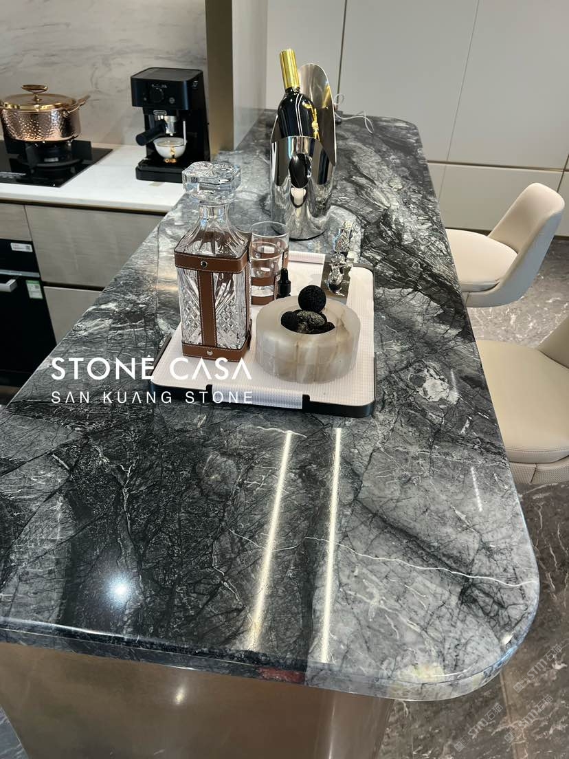 發(fā)布信息: 深邃的色彩 搭配古銅色的金屬飾板 讓整個(gè)西式島臺(tái)更顯