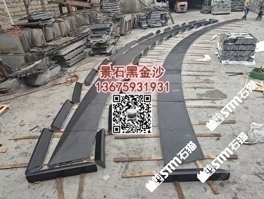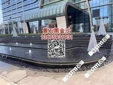印度黑金沙花崗巖水池水景工程水池幕墻干掛背景墻定制