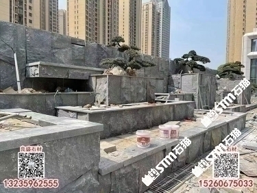 芝麻黑水池水景石材異形加工定制G654流水石背景墻