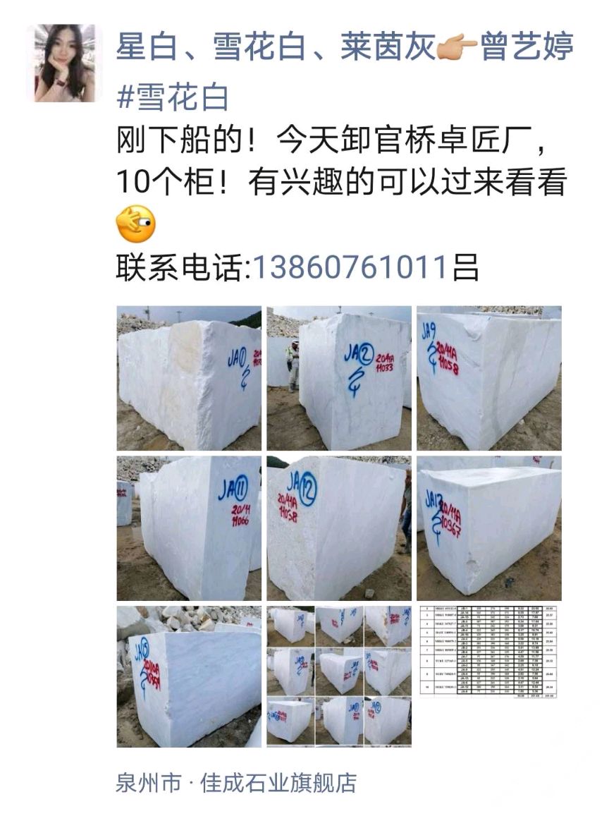 發(fā)布信息: 新到10個柜,雪花白 。 有興趣的聯(lián)系:13860761011呂