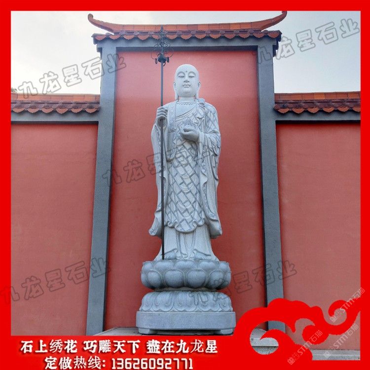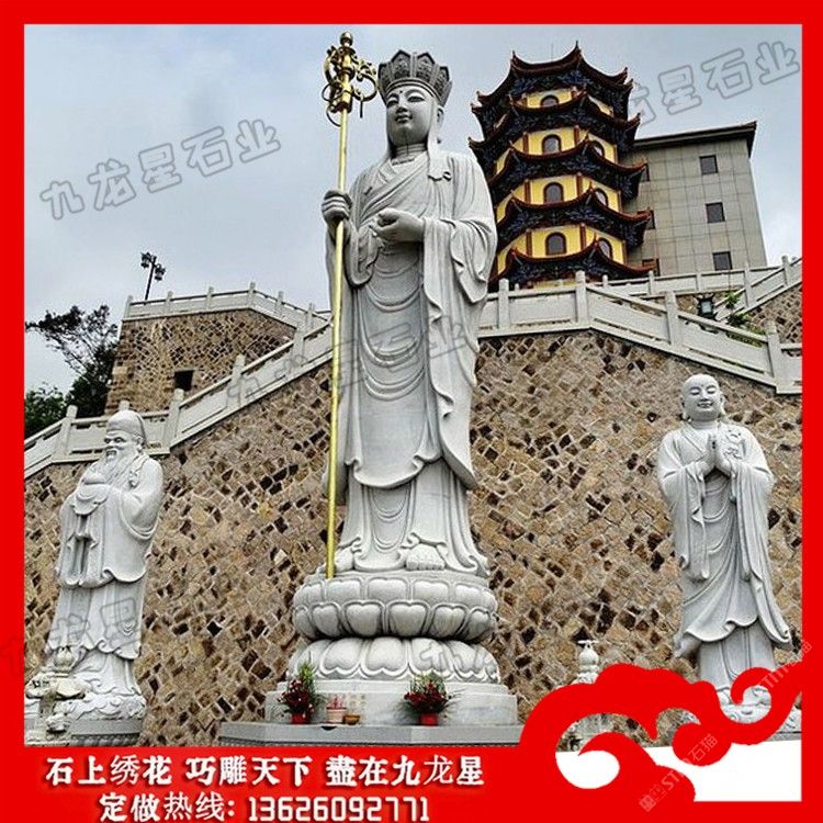 發(fā)布信息: 石雕地藏王座像 地藏王菩薩石刻像 廠家定制——九龍星石業(yè)。 石雕地藏王座像以一頭形似獅子的怪獸為坐騎的,名號曰:“諦聽”。諦聽又稱“獨(dú)角獸”,“地聽”,“善聽”,乃九華山鎮(zhèn)山之寶,相傳為金地藏菩薩坐騎。地藏王菩薩石刻像一般都是以光頭或者戴個五佛冠,也就是法師常戴的帽子。地藏王菩薩還有一個大的特點(diǎn)就是右手會有一根禪杖;左手當(dāng)胸棒有一顆寶珠。 石雕地藏王座像或稱地藏王菩薩,曾音譯為“乞叉底蘗沙”。因其“安忍不動如大地,靜慮深密如秘藏”,故名地藏。為佛教四大菩薩之一,與觀音、文殊、普賢一起,深受世人敬仰。以其“久遠(yuǎn)劫來屢發(fā)弘愿”,故被尊稱為大愿地藏王菩薩。