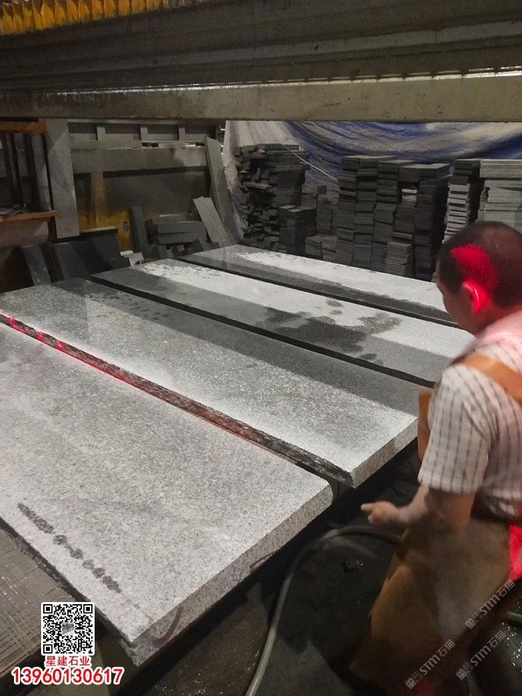 芝麻黑光面燒面機切面板材g654花崗巖規(guī)格板成品板
