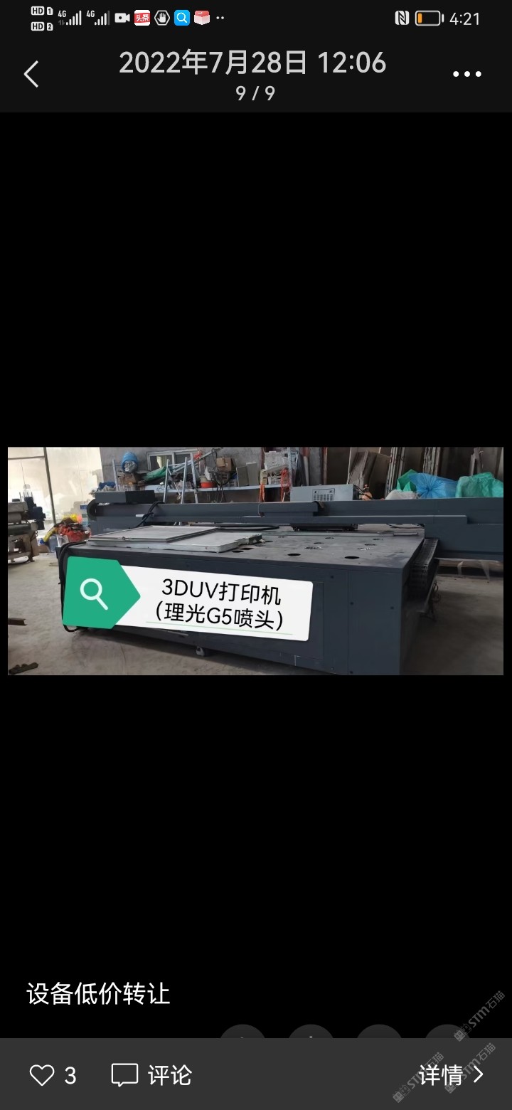 發(fā)布信息: 大理石過(guò)渡架15臺(tái),180度翻板機(jī),五燈固化機(jī),雙滾滾涂機(jī),單燈固化機(jī),22千瓦除塵柜,3dUV打印機(jī)