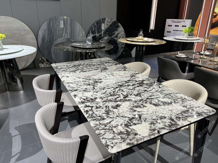 實木結合五金奢石餐桌:意大利威尼斯棕#奢石家居中心