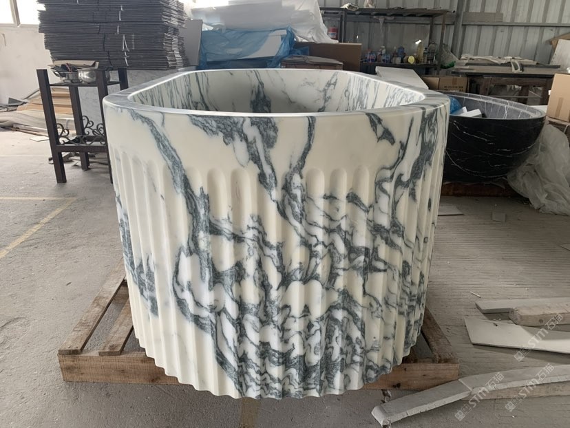 大花白浴缸 石材洗手盆柱盆擺件托盤花瓶咖啡桌