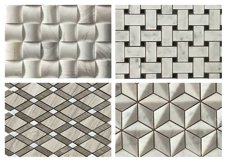 描述:石材馬賽克是將天然石材開介、切割、打磨成各種規(guī)格、形態(tài)的馬賽克塊拼貼而成的馬賽克,是最古老和傳統(tǒng)的馬賽克品種,最早的馬賽克就是用小石子鑲嵌、拼貼而成,石材馬賽克具有純自然、天然的質感,有非常自然的天然石材紋理,風格自然、古樸、高雅,是馬賽克家族中檔次最高的種類,根據(jù)其處理工藝的不同,有啞光面和亮光面兩種形態(tài),規(guī)格有方形、條形、圓角形、圓形和不規(guī)則平面、粗糙面等。用這種材料裝飾墻壁或者地面,既保留了天然石材本身的質樸感,又使圖案豐富。 天然大理石馬賽克是采用機切成很小顆粒,純手工拼制而成,由于馬賽克材料具有耐久性,不會因環(huán)境時間而剝落、變色,屬于高檔裝飾產品,色澤純正,典雅大方,具有經久耐用、永不褪色的特點。廣泛應用于各類建筑裝修、室內裝飾,是理想的高檔裝飾產品。